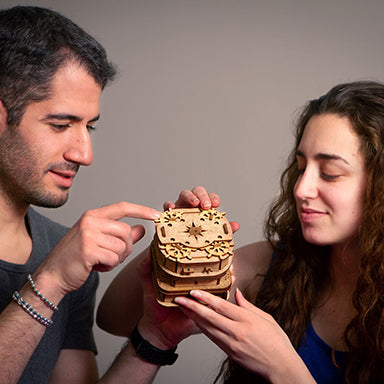 Legend says that the sea devil Davy Jones has locked the souls of dead sailors in a wooden box. Will you be able to reveal the secret of our 3D puzzle for adults? Dive into the fascinating world of the sea legend and save the souls of the sailors! This Escape Room in a box offers 60-90 minutes of immersive gameplay. The Cluebox is not just a game, but also a stylish home accessory made from the finest laser-cut birch wood. With its appealing wooden design, this 3D puzzle for adults and teens is an instant eye-catcher and a great gift idea.