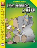 Paying attention! The 30 lessons in this learning unit will teach students to listen, remember what they have been told, and execute the oral directions given. To begin, students listen to an explanation of each exercise. “On your worksheets, there are three rows of boxes. You will be told what to do in each row.” Next children are given instructions. “Draw a line from the fish to the ball; make it go over the pig.” “Draw a triangle in the middle box.” While having fun with these imaginative activities, students will boost their listening, comprehension, and motor skills.